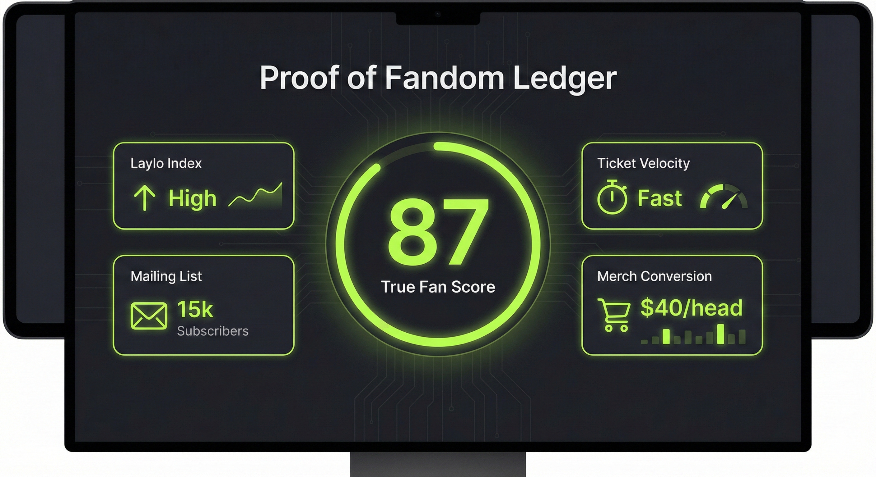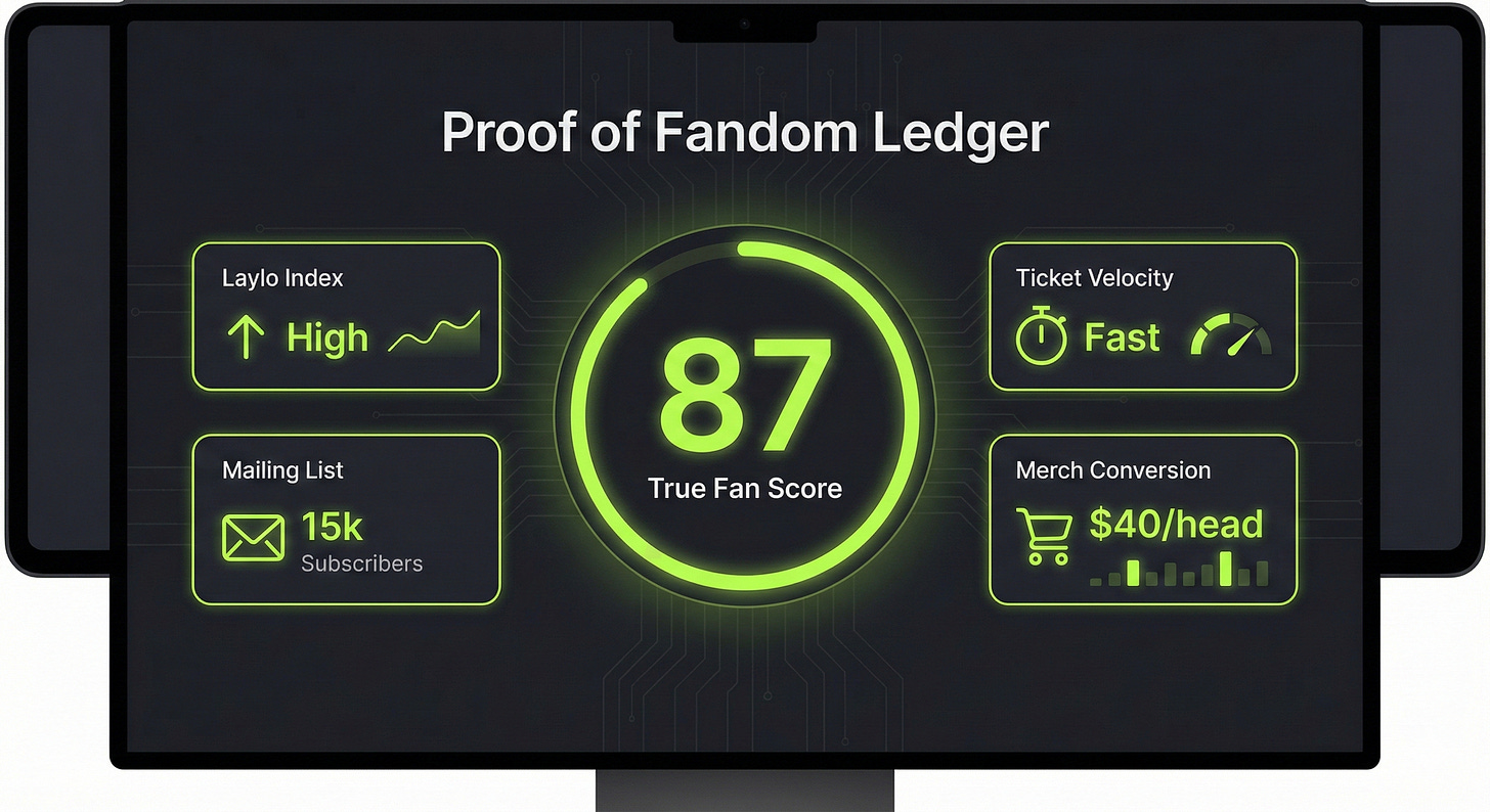 True Fan Count: Not listeners, but the number of unique humans who have engaged across 3+ platforms in 60 days.