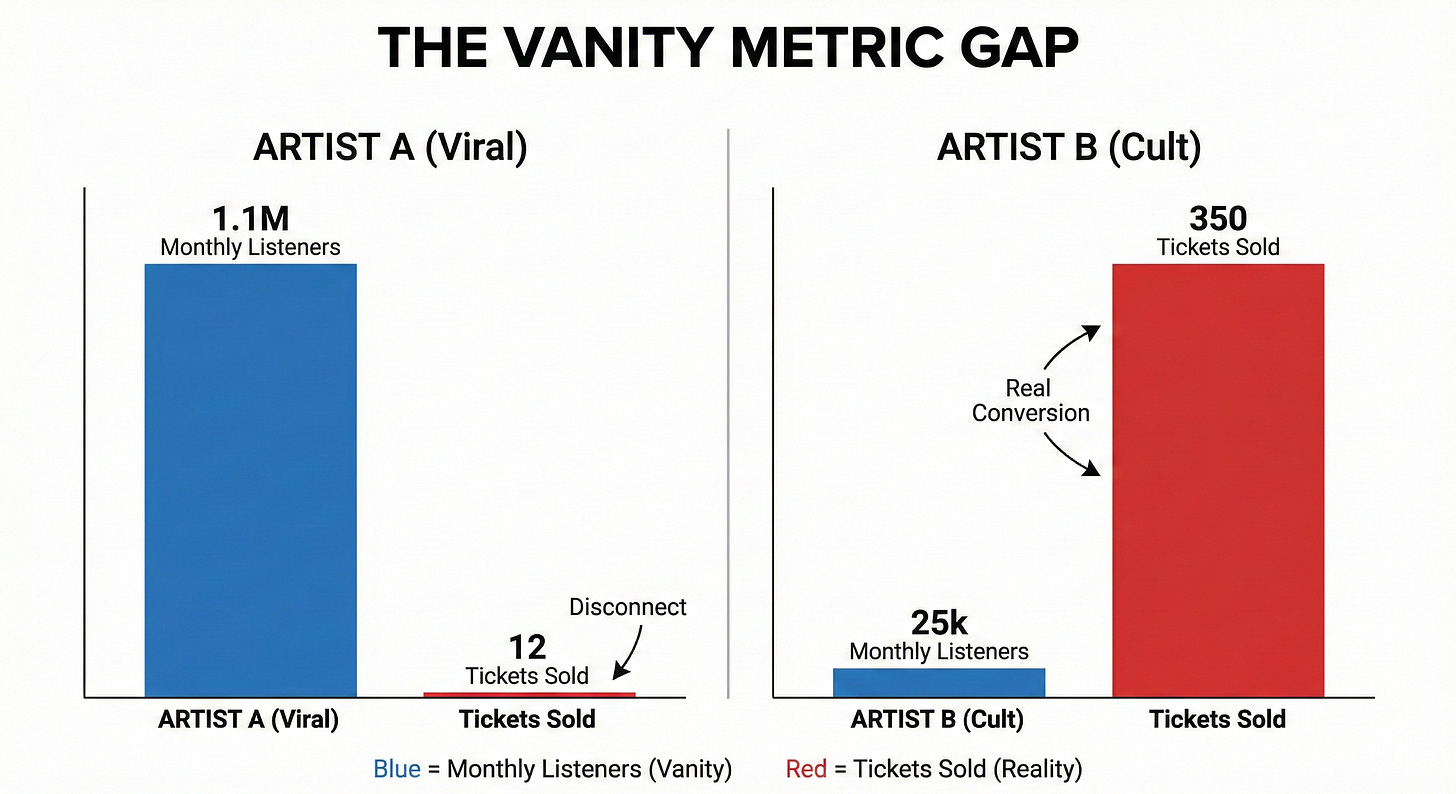 To the artists: Stop looking at your monthly listeners. It is a vanity metric designed to make you feel famous while keeping you poor. Start building your list. Start treating your fans like investors.
